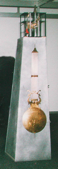 Messestand für die Uhrmacherinnung auf der GRUGA in Essen. Zentraler Punkt des Messestandes war die Uhr als Blickfang. Die Uhr war ca. 4 Meter hoch und aus verschiedenen Materialien gebaut.