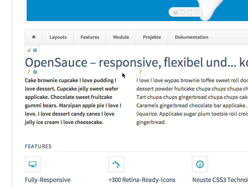 Machen Sie es sich und Ihren Redakteuren so einfach wie nie Inhalte mit Contao zu pflegen. Ein Klick genügt und Sie bearbeiten Inhaltselemente, Module und sogar Artikel. Probieren Sie es aus. Mehr Informationen.