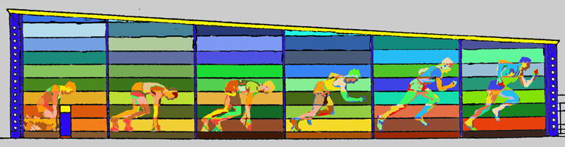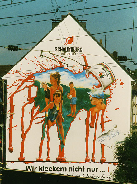 Wandbild für die Firmen Schaumburg und Caparol in Essen. (nähe Hauptbahnhof) Die Höhe beträgt 17 Meter.